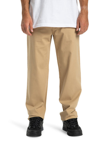 DC Worker Relaxed Fit Chino - Durch den geraden Schnitt und das pflegeleichte Material begleitet Dich diese Hose sowohl im Alltag, als auch auf Reisen. Durch den geraden Schnitt wirkt sie dabei nicht einengend. In insgesamt vier Taschen kannst Du außerdem allerlei Utensilien problemlos verstauen. Features: Stoff: Baumwolle and Elastan Twill, Fit: Relaxed Fit, Hosenschlitz/Taille: Fester Bund mit Reißverschluss, Zwei Eingrifftaschen vorne, Leistentasche mit Münzfach vorne, Zwei einzelne Leistentaschen hinten, Längere Leibhöhe - tiefsitzender Schritt, Relaxed Fit an Hüfte und Oberschenkel, Beine: Tapered Fit ab den Knien, Innenbein: 16.5", Zusammensetzung [Hauptstoff] 99 % Baumwolle, 1 % Elastan