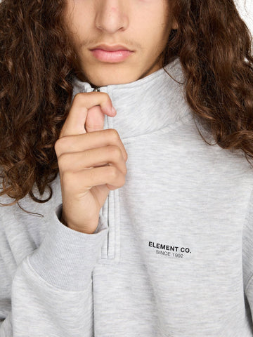 Element Co Quarter Zip - Der stylishe Co Quarter Zip Pullover von Element macht sich bei allerlei Gelegenheiten in Deinem Alltag gut. Mit dem Stehkragen und dem halblangen Reißverschluss erinnert er an die Achtziger und sieht richtig retro aus. Die elastischen Bündchen sorgen dafür, dass der Element Co Quarter Zip Pullover auch in der Bewegung gut sitzt. Features: Kollektion: Mainline-Kollektion, Stoff: 70 % Baumwolle, 30 % recycelte Baumwollmischung, ungebürsteter French Terry Stoff [320 g/m2], Conscious by Nature: GRS-Recycling-Baumwolle, Passform: Regular Fit, Hals: Stehkragen, Ärmel: Lange Ärmel, Kapuze: Gefütterte Kapuze in passendem Stoff, Verschluss: Durchgehender Reißverschluss vorne, Druck auf der Brust, Logo-Label an der Naht, Das Aussehen des Produkts kann je nach Platzierung des Drucks geringfügig abweichen