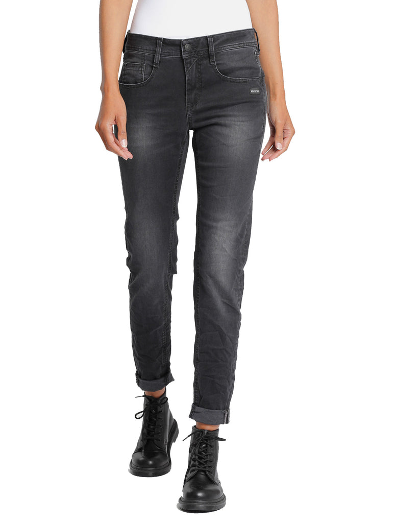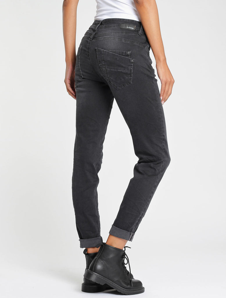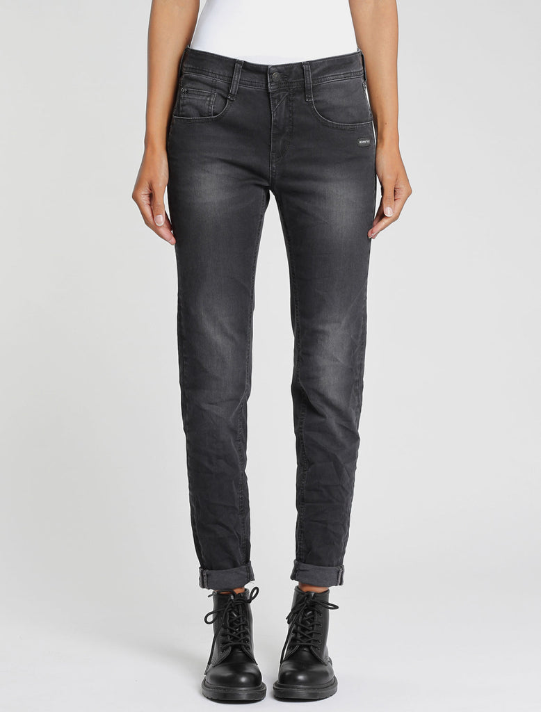 Gang Amelie Denim Pant - Die Amelie Pant von GANG überzeugt im relaxten 5-Pocket Style mit mehr Oberschenkelweite für zusätzlichen Tragekomfort und kann sowohl lässig auf den Hüften als auch eng, auf Passform getragen werden!!! Die doppelte Passe und die doppelte, rechte Gesäßtasche sind charakteristisch für dieses Modell. Die mittelblaue Jeans hat authentische Fade Effekte und einen angesagten Used Look, der normalerweise erst nach vielen Jahren des Tragens entsteht. Features: Relaxed Fit Jeans mit mittlerer Leibhöhe und normaler Beinlänge, Stretch-Denim, feminine Silhouette, 5-Pocket Style mit Reißverschluss und Knopf, komfortable Hüft- und Beinweite, Material: 88% Cotton, 9% Polyester, 4% Elastane, Made in Serbien