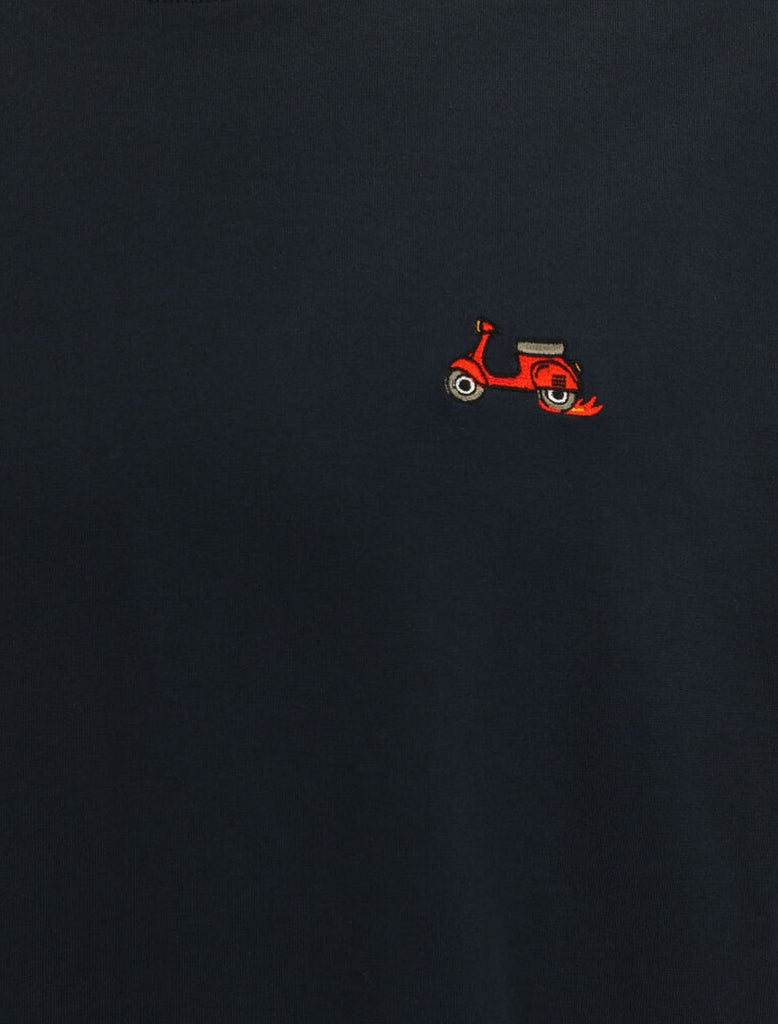 IrieDaily i Scooter Tee - T-Shirt mit einer kleinen Stickerei auf der Brust...Artwork von Iriedaily Design Lab! Shirt aus Bio-Baumwolle mit Rundhalsausschnitt und kleiner Flag Logo Stickerei auf der Brust. Das war’s. Simple, aber genial! Features: Rundhalsausschnitt kleine Stickerei auf der Brust Artwork von Iriedaily Design Lab Bio-Baumwolle hergestellt in Portugal vegan Gewicht: 200 g/qm