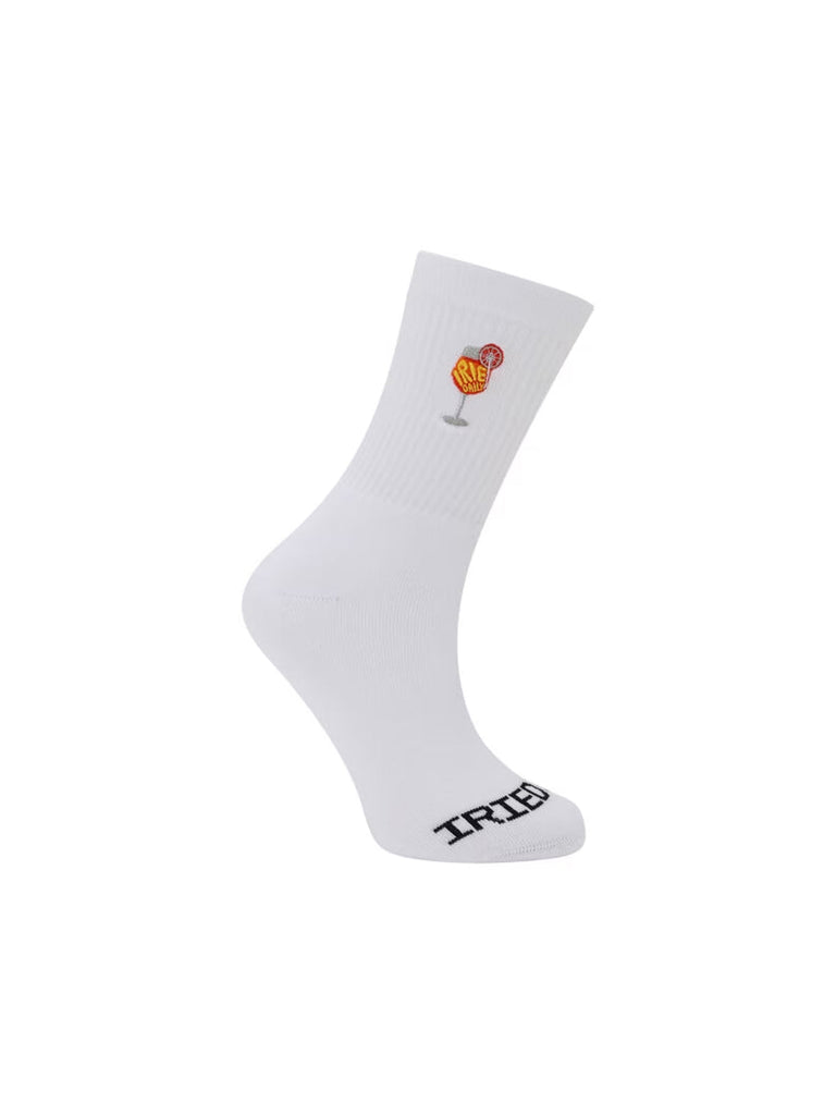 IrieDaily Irie Spritz Socks - Mit den IRIEDAILY Homeoffice Socks trägst du eine umweltfreundliche und friedliche Message in die Welt. Die gestickte Artwork kommt auf dieser klassischen Sportsocke mit IRIEDAILY Schriftzug auf dem Spann. Die Artwork kommt übrigens von GoodMood und die veganen Socken wurden in Portugal hergestellt. Features: klassisch geschnittene Sportsocke, Intarsia Logo am Zehenteil, kleine Stickerei an der Außenseite, Artwork von Goodmood, hergestellt in Portugal, EU Größen: S/M=39-42, L/XL=43-46, vegan