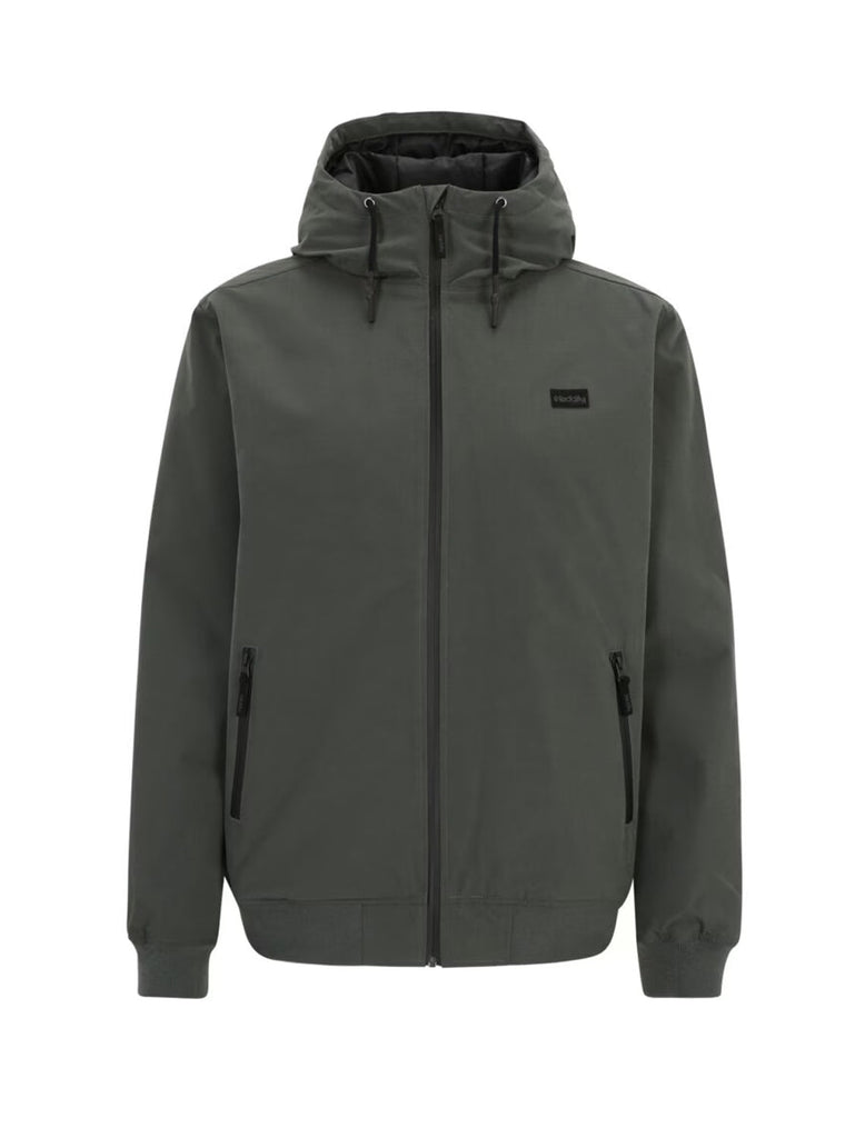 IrieDaily Nilas Jacket - Die IRIEDAILY Nilas Jacket ist perfekt für all diejenigen, die in regnerischen Gebieten leben! Denn die gefütterte Jacke ist durch die Wassersäule von 10.000 mm/br und die versiegelten Nähte an Schultern, Ärmeln, Nacken und Kapuze wasserdicht. Trotzdem ist die Membran atmungsaktiv. Das Obermaterial besteht übrigens aus einem Mix aus recyceltem Polyester und Bio-Baumwolle. Diese regenfeste Jacke solltest du dir nicht entgehen lassen! Features: - Regular Fit, - Wassersäule: 10.000 mm, - winddicht, - gestepptes Futter, - große, gefütterte Kapuze mit Tunnelzug, - durchgängiger Reißverschluss mit Kinnschutz, - zwei Reißverschlusstaschen auf der Front, - Innentasche mit Knopfverschluss, - elastische Bündchen an Ärmel und Saum, - Logodetails in Lederoptik, Material: Innenmaterial: 100% Polyester