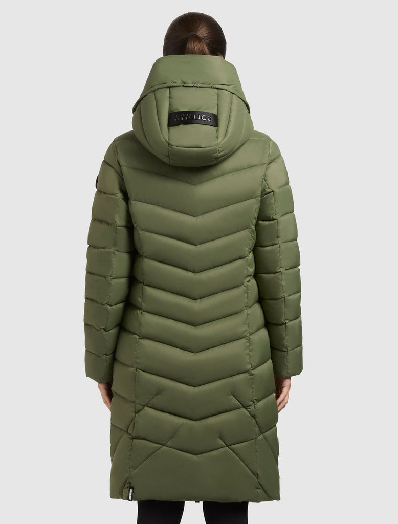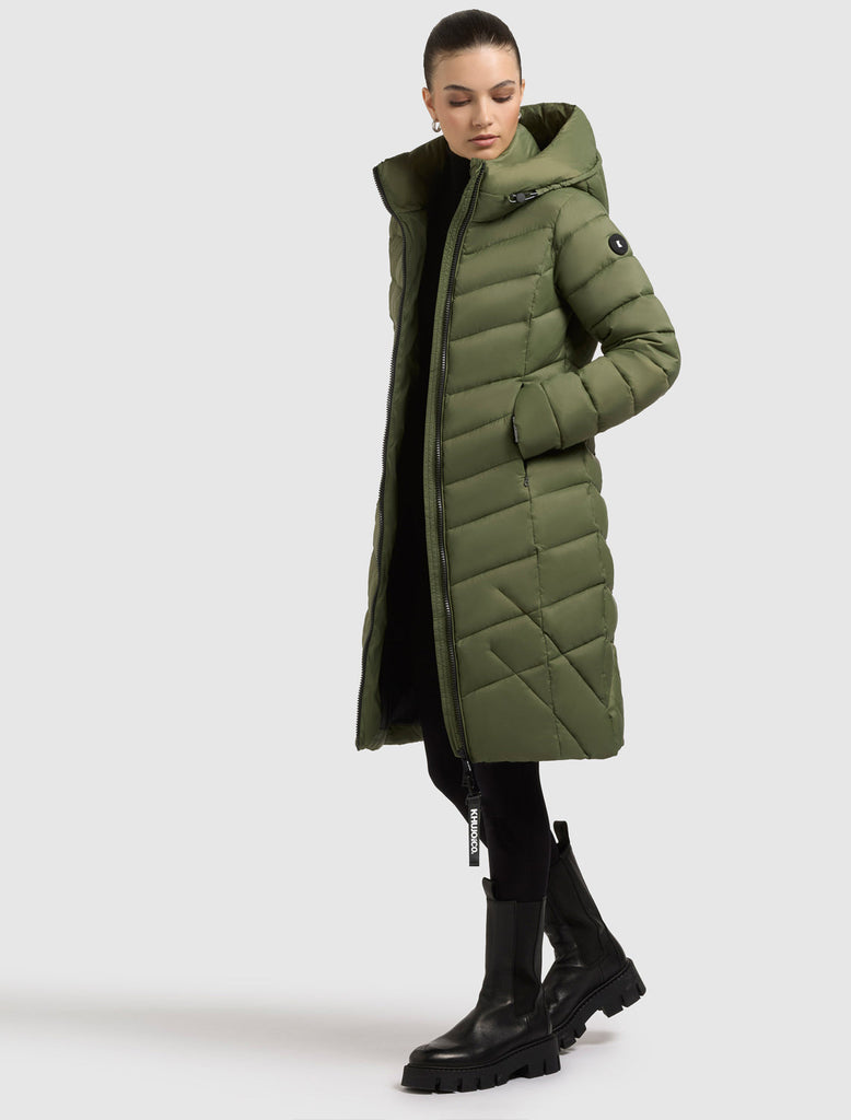 Khujo Odana 4 - Der knielange Schnitt und das Steppmuster machen den warm wattierten khujo Mantel ODANA3 zum absoluten Eyecatcher. Eine gefütterte und hoch schließende Kapuze, ein wattierter Stehkragen, elastische Bündchen am Ärmelfutter und Taschenbeutel mit Fleece bezeugen bei diesem Steppmantel einmal mehr die Leidenschaft für Details von khujo. Kleinigkeiten lassen sich bei dieser Winterjacke in den Nahttaschen mit Reißverschluss und zwei verschließbaren Innentaschen sicher verstauen. Features: Zwei-Wege Reißverschluss, hoch schließende Kapuze mit Kordelzug, elastisches Bündchen am Ärmelfutter, Taschenbeutel mit Fleece, Passform: slim fit, Länge: knielang, Gesamtlänge: 96 cm bei Größe S, Material: 100% Nylon, Innenmaterial: 100% Nylon, Pflegehinweis: Normalwaschgang 30°C Tumblertrocknung nicht möglich Bügeln bei max. 110°C ohne Dampf Nicht bleichen