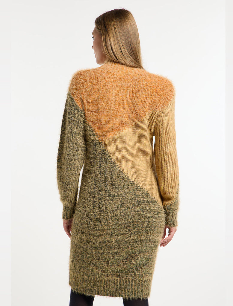 Ragwear Yerome - Im veganen Strickkleid YEROME von ragwear triffst du genau den richtigen Ton - lässig, warm und stilvoll. Das knielange Kleid kombiniert eine lockere Passform mit einem auffälligen Colourblock-Design in erdigen Tönen. Unterschiedliche Garnstrukturen - glattes Garn trifft auf weiches Flauschgarn - sorgen für einen spannenden Materialmix. Die langen Ärmel, der hohe Kragen und die breiten Rippstrickbündchen machen den Look perfekt und halten dich angenehm warm, wenn es draußen kühler wird. Features: • Veganes Strickkleid mit angesagtem Colourblock-Design, • Weiches Strickmaterial aus Acryl und Nylon, • Materialmix aus glattem und flauschigem Garn, • Lockere Silhouette mit leichtem Stretch, • Hoher Kragen und lange Ärmel, • Breite Rippstrickbündchen an Ärmeln und Saum, Gesamtlänge: 93 cm bei Größe S, 80% Polyacryl, 20% Nylon