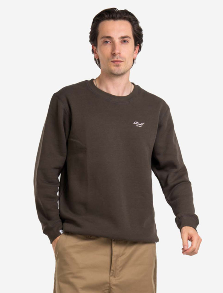 Reell Staple Logo Crewneck - Der Staple Logo Crewneck aus einem Baumwoll- und Polyesterfleece. Konstruiert mit eingesetzten Ärmeln und Rippstrickbündchen an Ärmeln, Kragen und Saum. Mit einem gewebten Markenetikett an der rechten Manschette und einem Script-Logo auf der Brust. Features: Gebürstetes Fleece aus Baumwollmischung, Webetikett an der rechten Manschette, Rückenschlaufe aus Baumwolle, Ärmelbündchen, Kragen und Saum aus Rippenstrick, Material: 65% Baumwolle, 35% Recyceltes Polyester, Auf links bügeln. Auf links waschen. Mit ähnlichen Farben waschen. Nicht im Trockner trocknen.